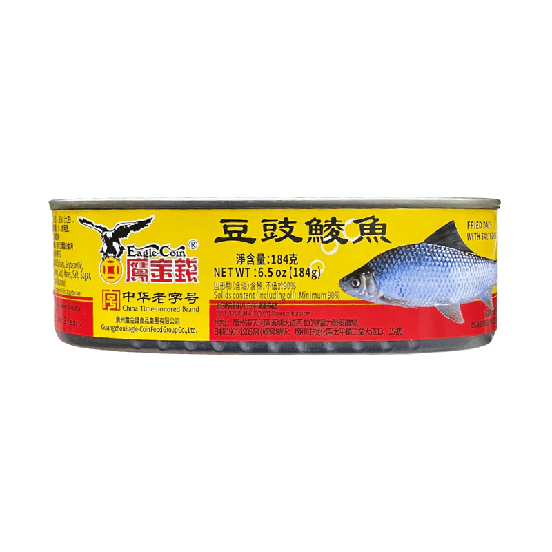 Details Made In:Mainland China Unit Qty:6.5 oz Brand:Eagle Coin Brand Allergens: Fish,Wheat (Gluten),Soy. Dietary Needs: Trans Fat-Free Description Eagle Coin Fried Dace with Salted Black Beans